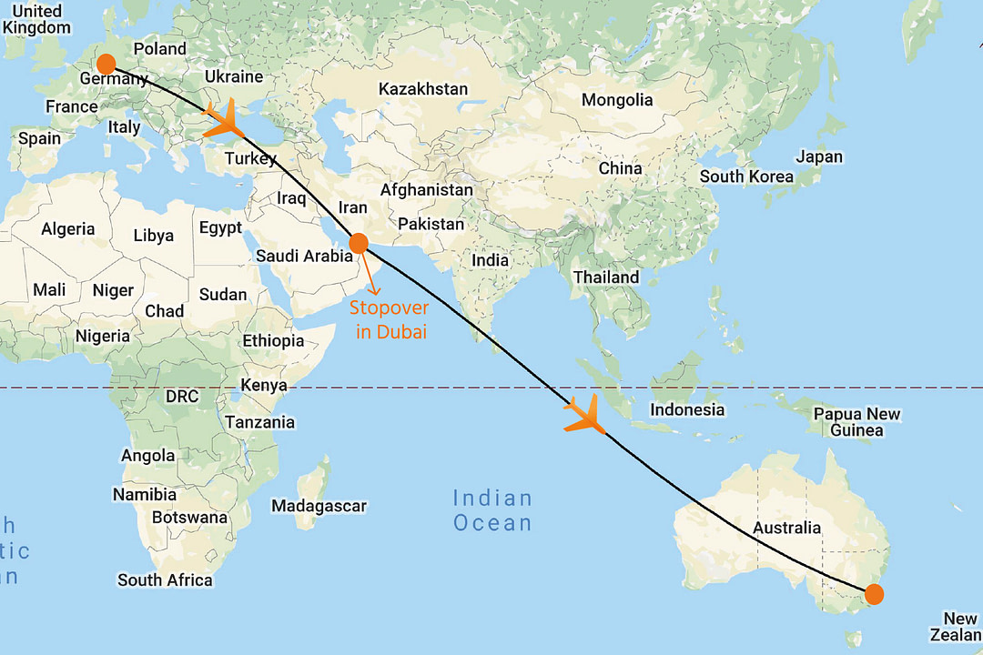 Beispielreise von Berlin nach Sydney: