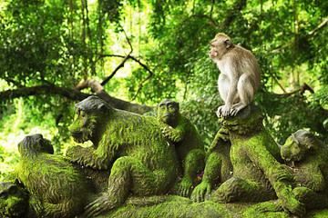 Naturschutzgebiet mit Tempelkomplex: Der Monkey Forest Ubud ist, wie der Name sagt, Heimat vieler Affen. Ein schöner und beschaulicher Ort, um mit diesen Tieren in ihrer natürlichen Umgebung in Kontakt zu kommen.