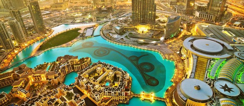 Am Fuße des Burj Khalifa findet jeden Tag eine große kostenfreie Fontänen-Show statt. Da spritzt nicht nur Wasser aus einem Brunnen, nein, die Veranstaltung hat ¬– wie sollte es in Dubai auch anders sein – Weltklasseformat: ein beeindruckendes Spektakel aus Wasser, Licht und Musik. Wie in einem Ballett tanzen die Fontänen über den See und bringen Groß und Klein zum Staunen. Besonders schön anzuschauen ist das Ganze von oben, wenn die Wasserspiele weit unter einem in der Dunkelheit glitzern.