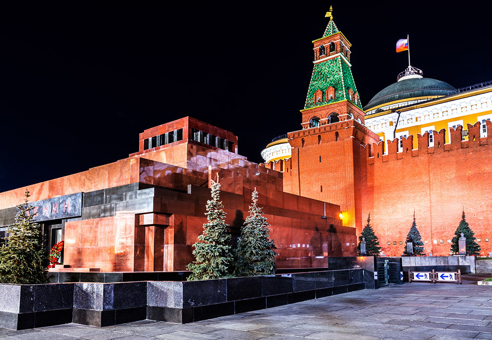 In einem einer Pyramide ähnelnden rot glänzenden Gebäude vor den Mauern des Kreml liegen die mumifizierten Gebeine des Oktober-Revolutions-Führers Vladimir Ilyich Ulyanov, besser bekannt als Lenin. Der Eintritt zum Mausoleum ist kostenlos und für größere Kinder ist ein Besuch spannend. Für jüngere ist er weniger zu empfehlen, da es im Inneren sehr dunkel ist. Die Wartezeit vor dem Mausoleum kann, je nach Tages- und Jahreszeit, schon einmal 30 bis 45 Minuten betragen. Guides vor Ort bieten aber gegen Gebühr einen bevorzugten Zutritt an.