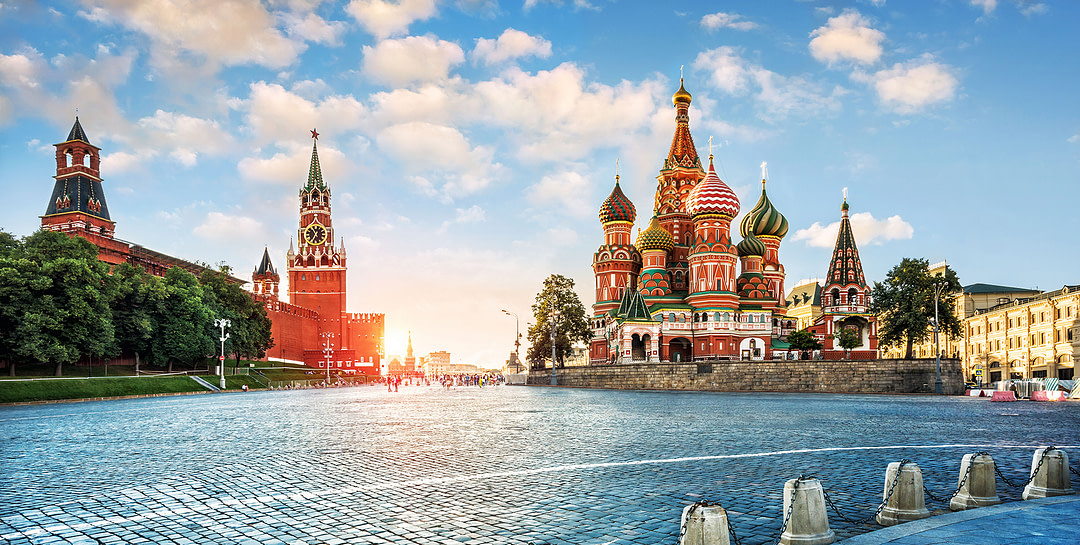 Heute landen hier zwar keine Flugzeuge mehr, dafür versammeln sich jedes Jahr zahlreiche Touristen, und das aus gutem Grund. Eingerahmt wird der Rote Platz von der 2.235 Meter langen blutroten Mauer des Kreml, dem Staatlichen Historischen Museum, dem Warenhaus GUM und der Basilius-Kathedrale. Das Wahrzeichen der Stadt vereint neun Kirchen unter neun bunten Kuppeln, die so aussehen, als würden sie sich wie eine übergroße Spieluhr jeden Moment zu drehen beginnen.