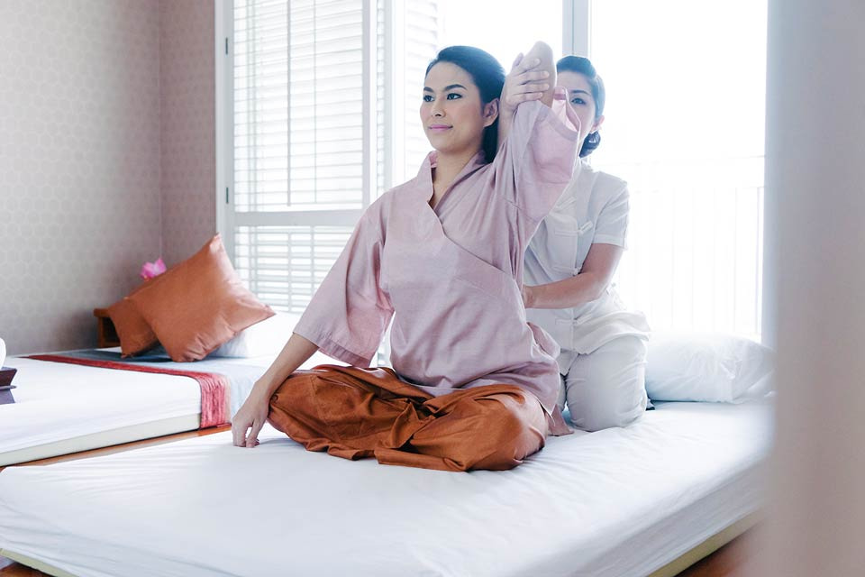 Bei dieser traditionellen Thai-Massage legt man sich bekleidet auf eine Bodenmatte und lässt seinen Körper sanft dehnen, aber auch druckvoll bearbeiten: Mit Rhythmik wird per Daumen, Knie, Ellenbogen, Fuß oder Handballen Druck auf den Körper ausgeübt. Die Wat-Pho Massagen lehnen sich dabei an die Techniken des Yoga und Ayurveda an. So können durch die sanften Dehnbewegungen, Druckpunktmassagen, Gelenkmobilisationen und Streckpositionen gezielt individuelle Beschwerden gelindert werden.